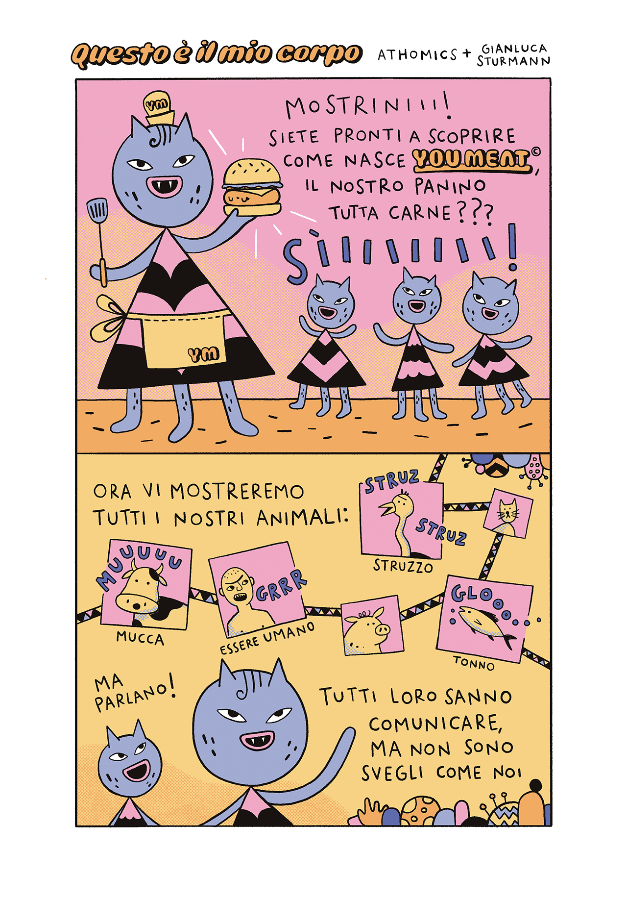 Fumetto realizzato insieme a Thomas Belvedere (Athomics) che ne ha realizzato la sceneggiatura. Pubblicato sulla terza uscita di “Clamorosə”, a cura della redazione de “La Falla” del Cassero. Il tema di questo numero era il corpo, tema che qui è stato trattato in relazione al pensiero antispecista.